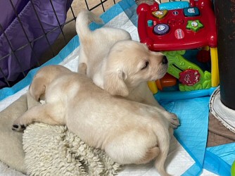 | 5 black and yellow pups were born December 5; 1 yellow male is available. All-American Field bred pups will make excellent prospects for Field Trials, Hunt Tests, waterfowl and/or upland hunting. All pups will be introduced to live birds and water (weather permitting, in addition to the Deep Run Puppy Head Start program. Pups will be ready for new homes late January. Yellow Males:
