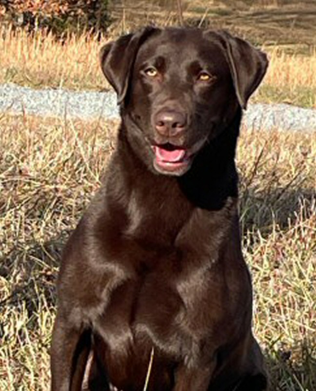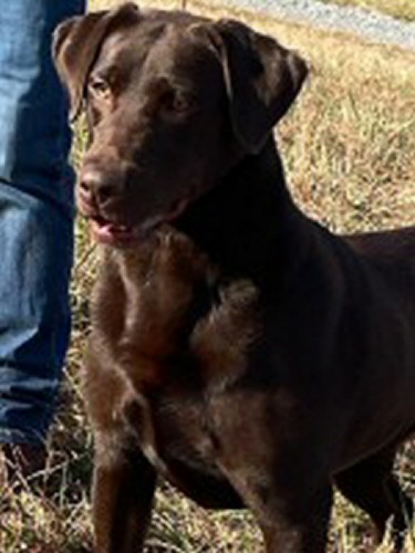 Danikk Deep Run Davy Crocket is a handsome chocolate English Labrador Retriever. Davy is the son of GCH CH Cedarwood Danikk Brass Tacks, JH, a stunning black dog. Davy is a friendly, happy dog with classic English good looks.