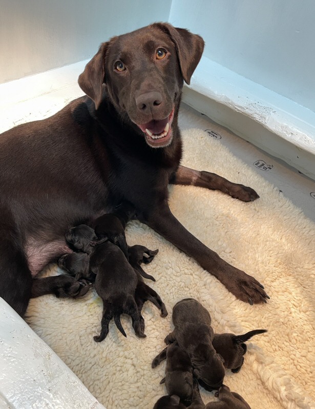 Introducing Deep Run Polka, Mother of this beautiful litter of 7 chocolate babies born Jan 11.