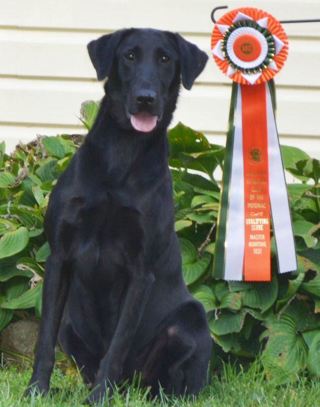 Rogue is a 60 pound black female from excellent Field Trial lines. Rogue does carry yellow. She is a well mannered exceptionally talented dog with excellent marking skills. She is a to train and to compete with. Her sire, FC AFC KPR's Wet Willie, is a handsome yellow male who achieved 51 Derby points, and his FC and AFC titles by the age of 3. Her dam Gosswood's Going Rogue QAA, completed 5 of the 8 Derbies she ran, and was QAA by the age of 3. Rogue has completed every Hunt Test in which she was entered, and completed her Senior and Master Hunter Titles in ten events. After this litter, Rogue will be running in field trials. Rogue is OFA Good, Elbows, Patellas, Eyes and Dentition normal. EIC and CNM clear, OFA Cardiac clearance by Echo. Here is a link to Rogue's OFA page. |