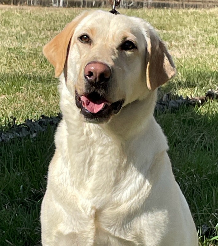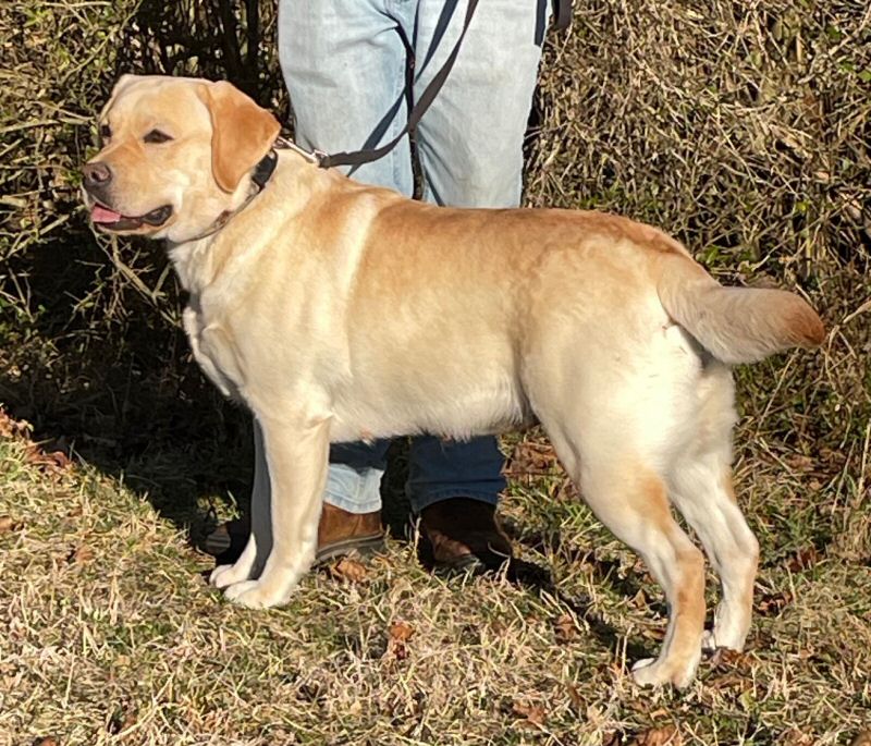 Blizzard is a handsome 80 pound English yellow male labrador. I kept Blizzard and his litter sister Deep Run Shandy from a litter that I bred because I loved their charming personalities, typey English Labrador looks, and their happy approach to daily life. They both enjoyed their puppy training and love to swim, retrieve, and learn new things. Blizzard finished his Junior Hunter Title in one weekend of hunt tests, with four consecutive passes. He has several conformation wins at AKC shows, but the interruption in shows caused by the pandemic ended his show career. He enjoyed being home so much I simply decided he should stay here at Deep Run. His superior good looks, good health, and happy personality make him a joy to have at the kennel. He is a very healthy dog, and has all his health clearances as well as his CHIC (Canine Health Information Center) certification. See a copy of Blizzard's OFA files. |