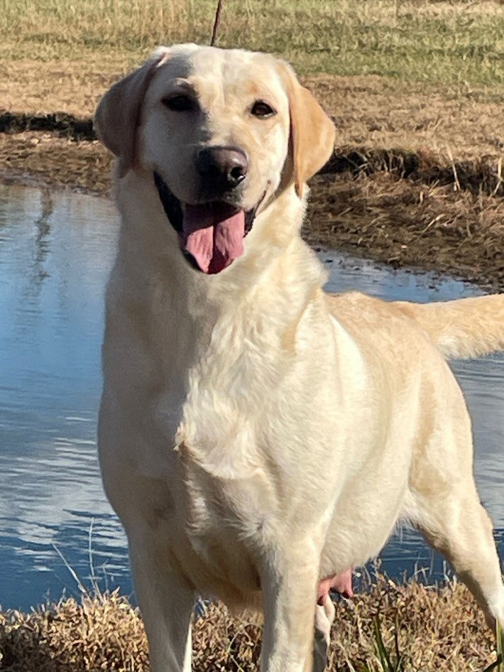 Peggy Sue is a 55 pound yellow female, excellent marker, and enthusiastic worker. She enjoys her retrieving and completed her Junior Hunter Title going 4 for 4 passes.Her sire, U GCH, UCH Sam Spade JH is a son of GCH CCH, UGCH GCH Poplar Forest Play It Again Sam UD RA MH MHU......the first EVER Labrador Retriever to achieve AKC MH titles in both Retrieving and Upland Hunting. Peggy Sue has all health clearances OFA Hips Good, Elbows Normal, LR-EYE29506/19F, EIC Clear, CNM Clear, PRA Clear, D Locus Normal, Cardiac Clear, Patellas Normal. Click on bolded name to see Peggy Sue's OFA files. |