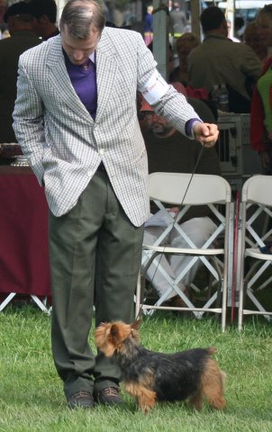 CH Watermark Fedora, aka Gangster. Gangster will be hitting the show circuit this fall under the expert handling of Roxanne Sutton. Gangster is a two year old red male Norwich Terrier. We are proud to announce his winning record, completing his Championship with all Major wins. HE has also earned his CHIC Number for OFA Hips, Eyes, Patellas, Dentition and a normal Echocardigram. Gangster is a proven sire, and we are looking forward to seeing his offspring in the show ring this year. | |